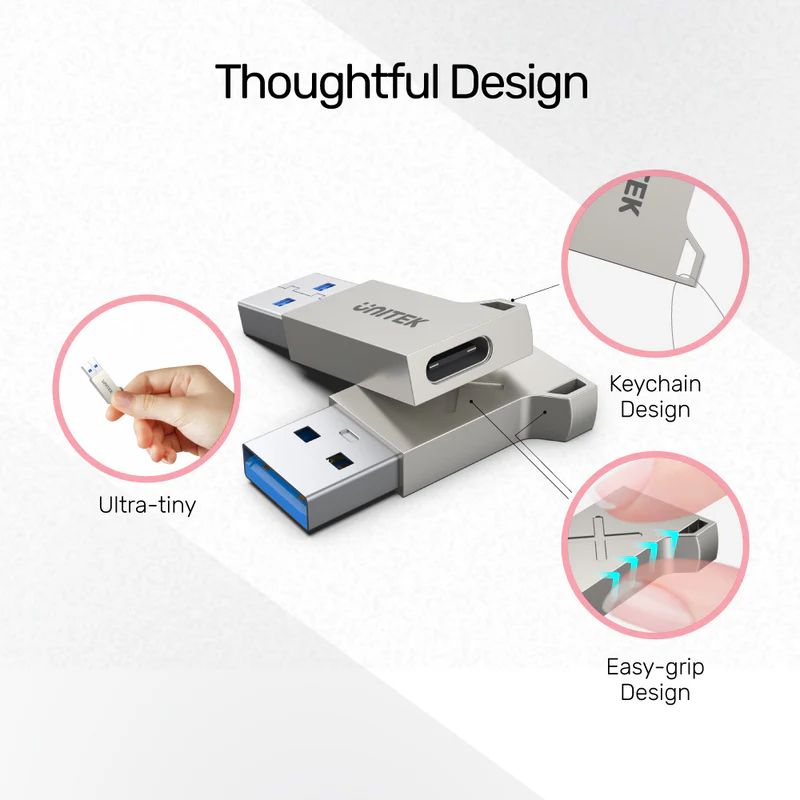 The ultra-tiny, easy-grip design includes a keychain attachment for portability. Compact yet sturdy, it’s crafted for convenience—perfect for on-the-go connectivity without bulk.