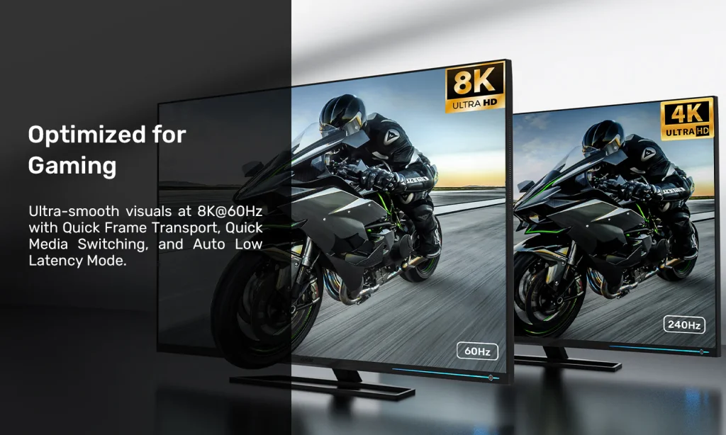 Supports 8K@60Hz and 4K@120Hz – ideal for next-gen consoles, PCs, and 8K TVs.