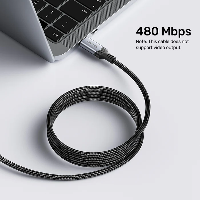 Unitek C14110GY USB-C Power Delivery 3.1 Charging Cable 2m is a high-performance charging solution that supports up to 240W fast charging when paired with a compatible charger. The cable features a strong and elastic nylon braided design for durability, and supports data transfer rates of up to 480Mbps. With a convenient 2M cable length, you can charge your devices with ease. The built-in E-marker chipset ensures safe charging, providing peace of mind while powering up your devices.