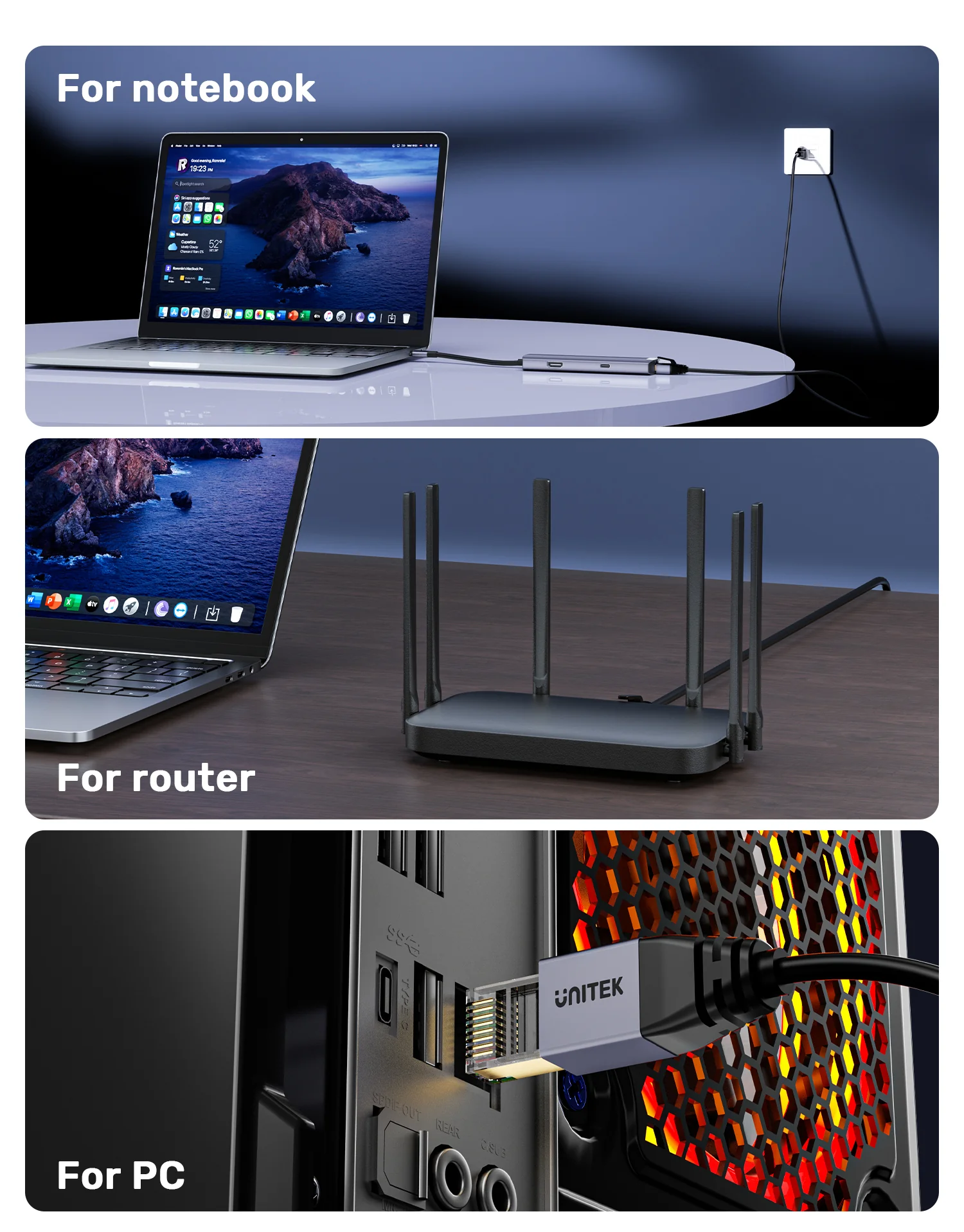 Seamless compatibility with a range of devices, including notebooks, routers, and PCs. It also offers backward compatibility with earlier standards, supporting Cat 7, Cat 6e, Cat 6, Cat 5e, and Cat 5 cables. This versatility ensures optimal performance across various networking setups, making it a reliable choice for both home and office use. Enjoy fast and stable connections with a cable that meets your diverse connectivity needs.
