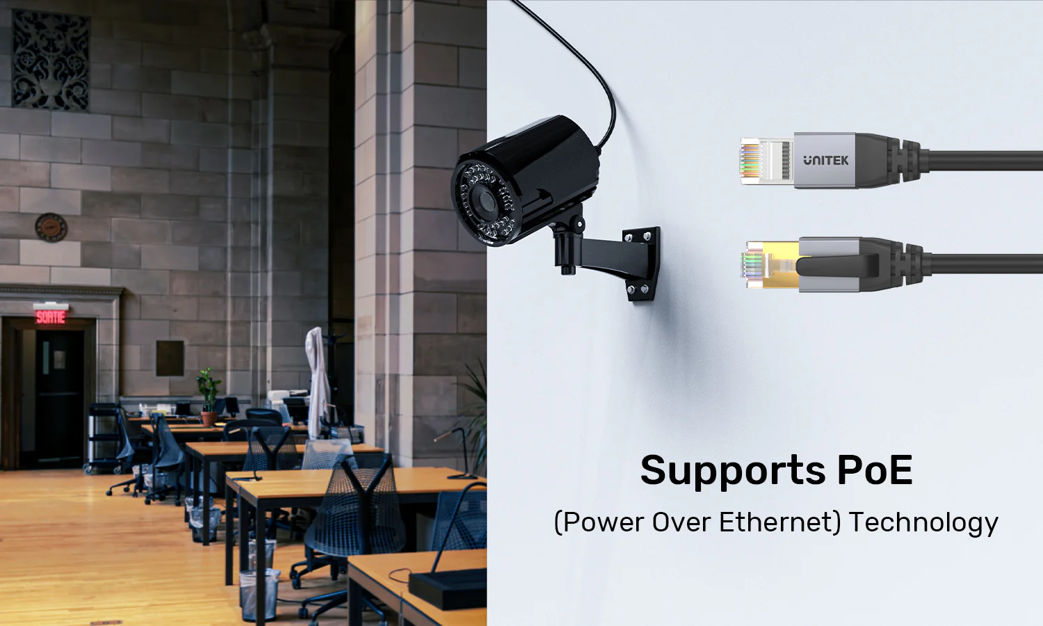 The UNITEK Cat 8 Ethernet cable supports Power over Ethernet (PoE) technology, allowing both power supply and data transmission to seamlessly pass through the same cable. This feature enhances convenience and efficiency in your network setup.