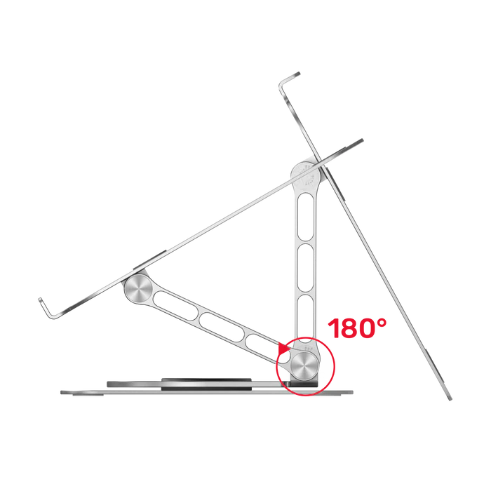 - Multitask Makes Easy: Enhance the productivity with two screens, our 360° laptop stand can raise your laptop to a similar height with your external monitor and make multitasking more accessible as it supports dual screen viewing simultaneously.