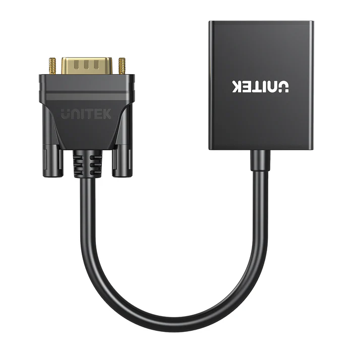 Unitek VGA to HDMI Adapter with audio cable for connecting old VGA devices to HDMI displays.