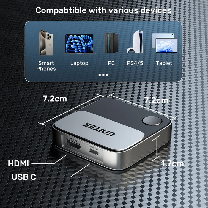 Tags: 4K@60Hz, Android, Compact, Effortless Screen Mirroring, High-Definition Output, iOS, Mac OS, Unitek Wireless Screen Mirroring Device, universal compatibility, Versatile, Windows
